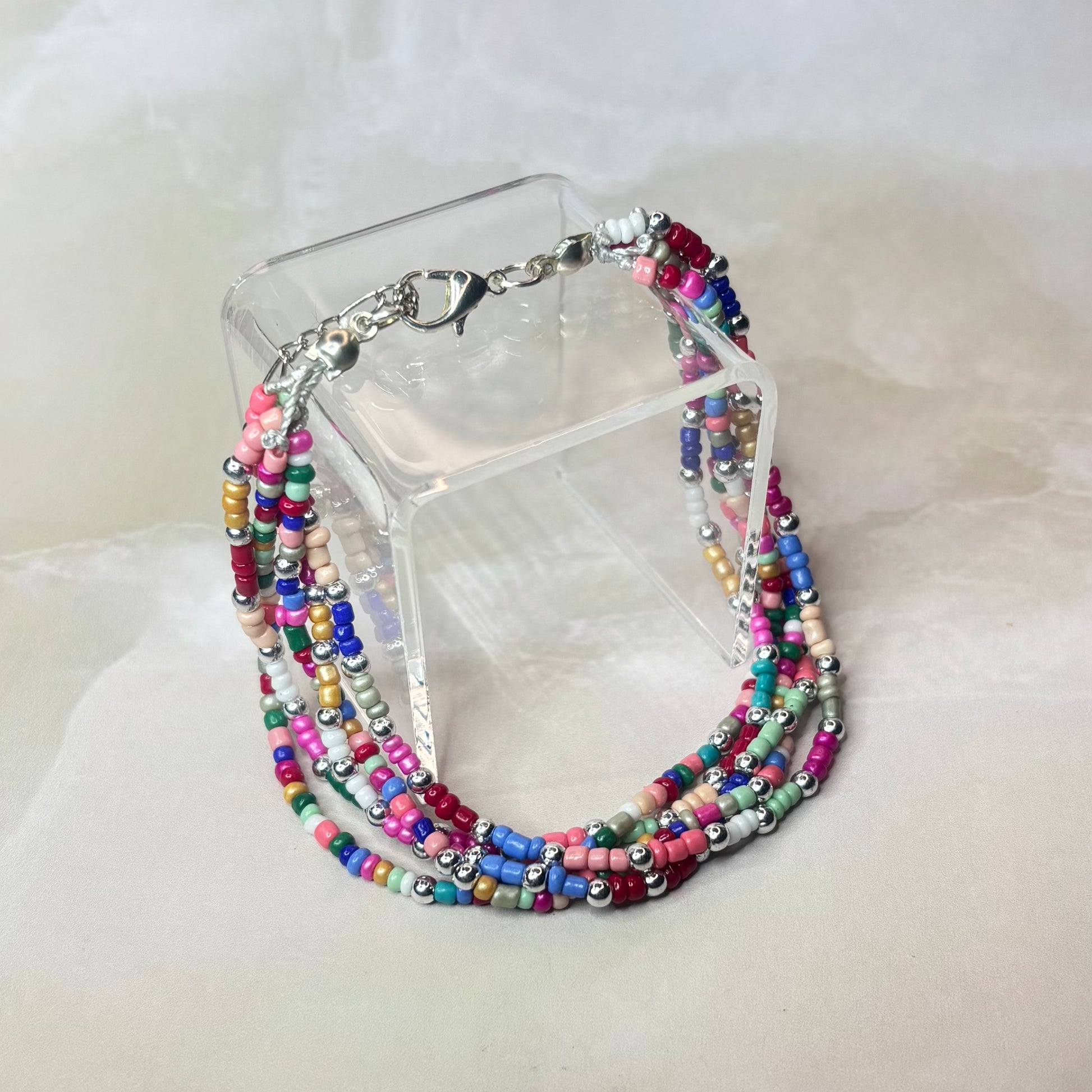 Ein sehr schönes Regenbogen farbenen Armband,aus bunten rocalles. Größe 18.