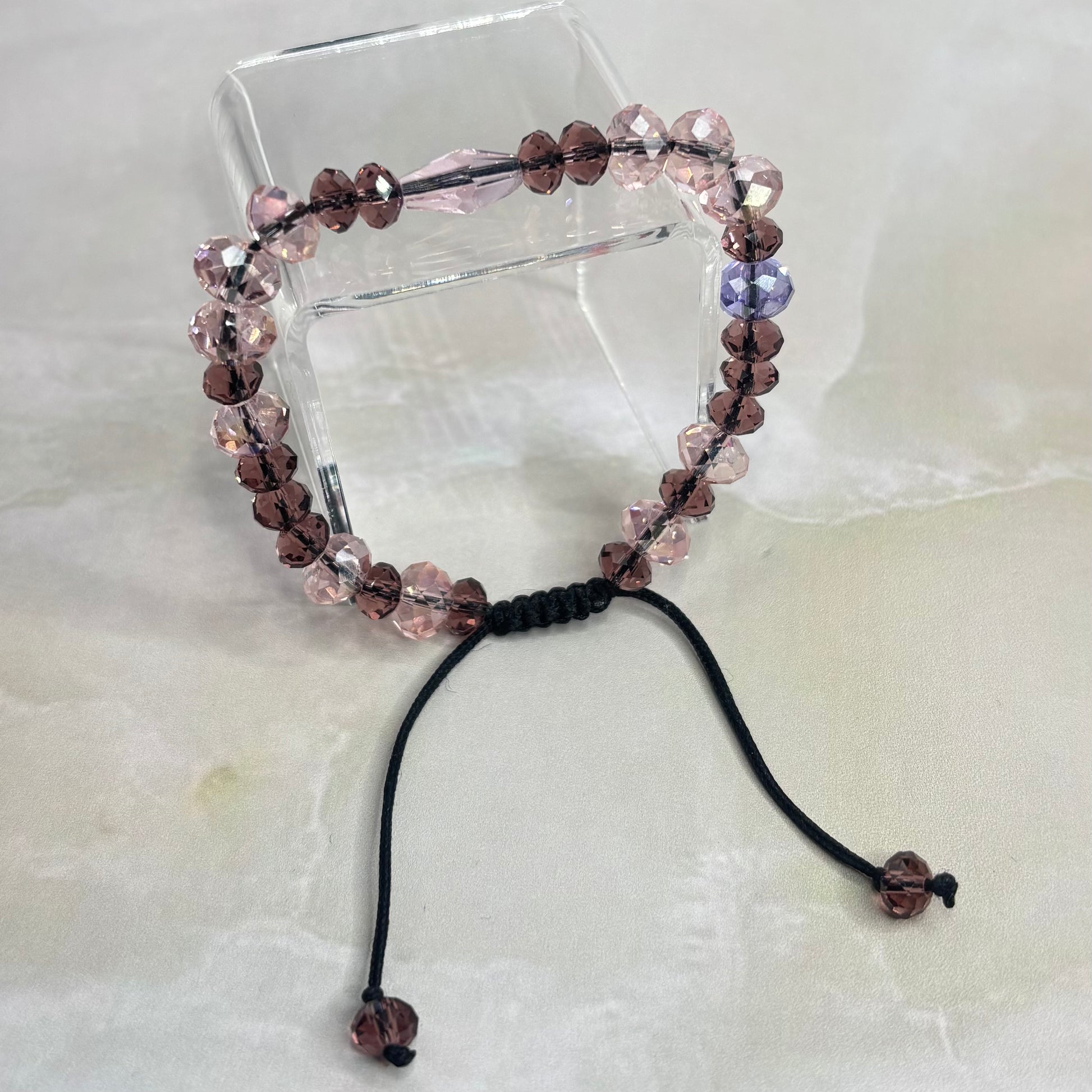 Ein sehr schönes verstellbares Armband aus Glasschliff Perlen in der Farbe altrosa . Größe 15-19.
