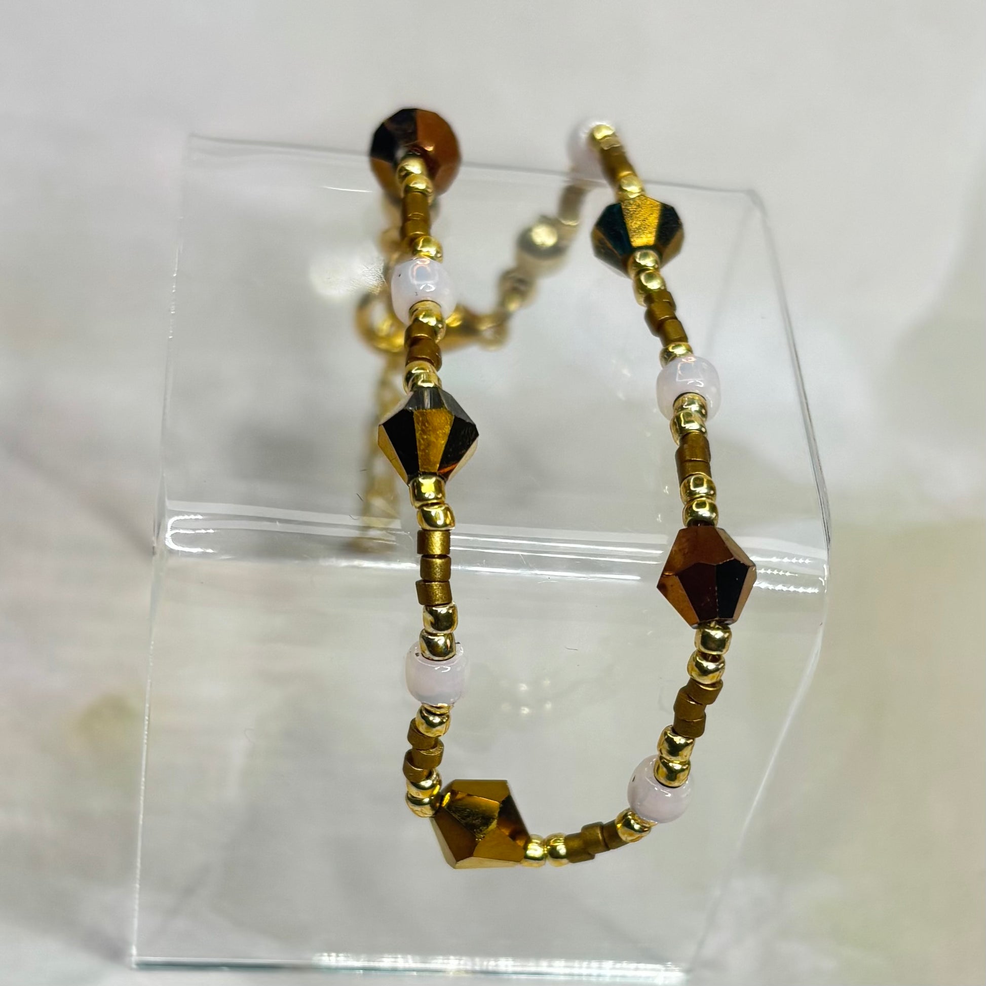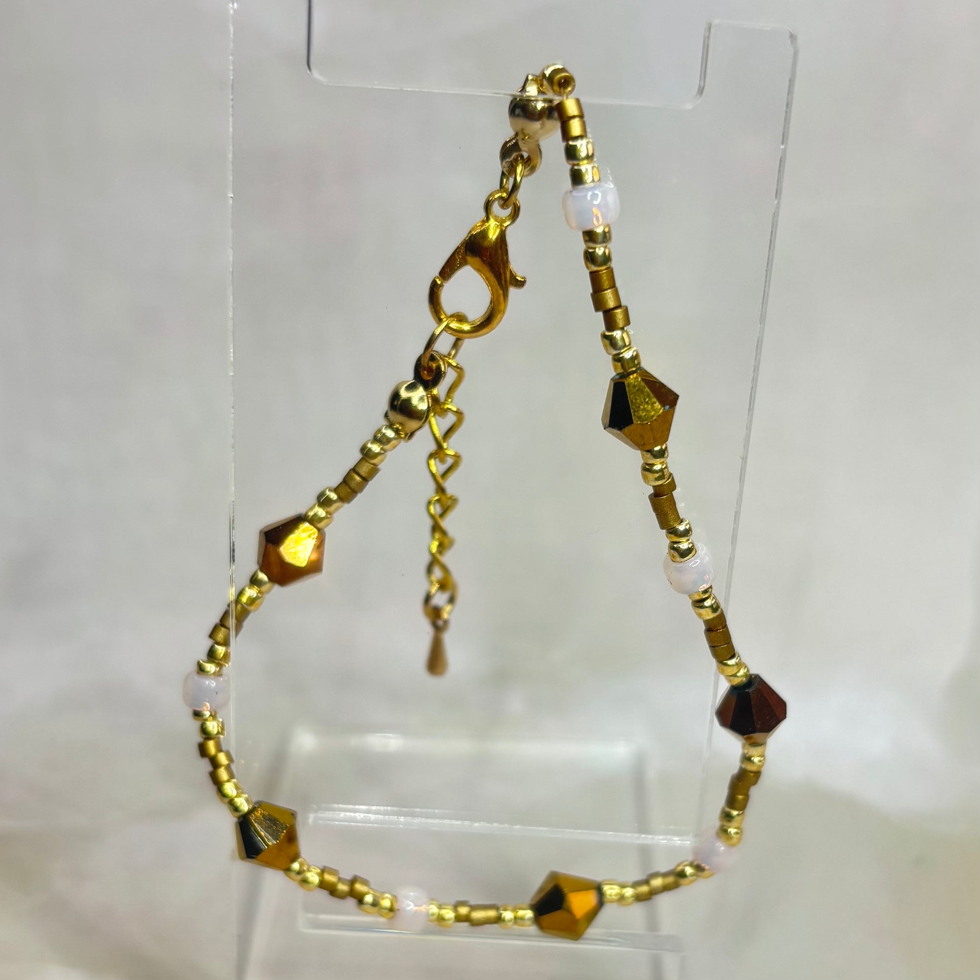 Ein sehr schönes dezentes Armband aus Glasschliff Perlen und kleinen miyuki in der Farbe Gold. Größe 16.