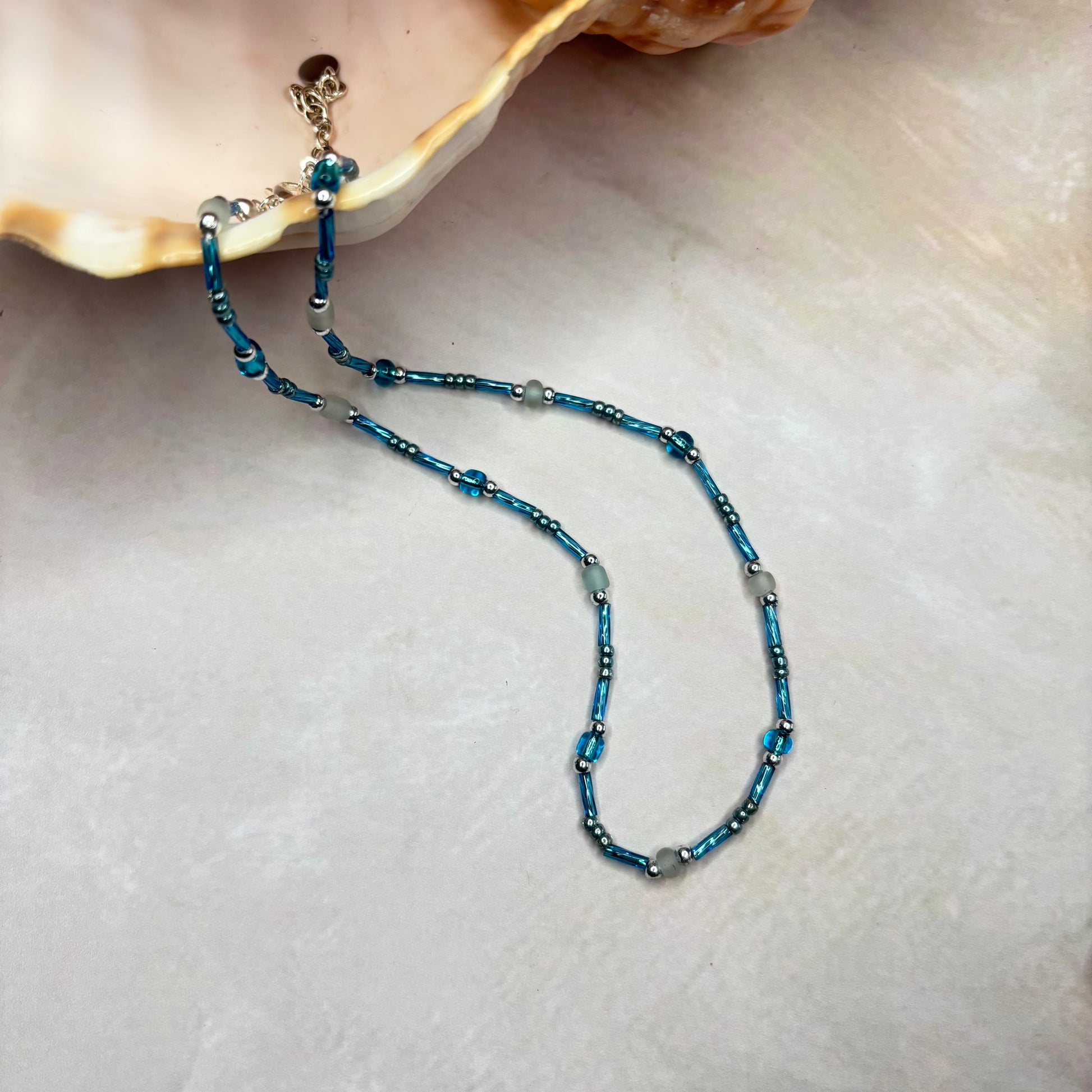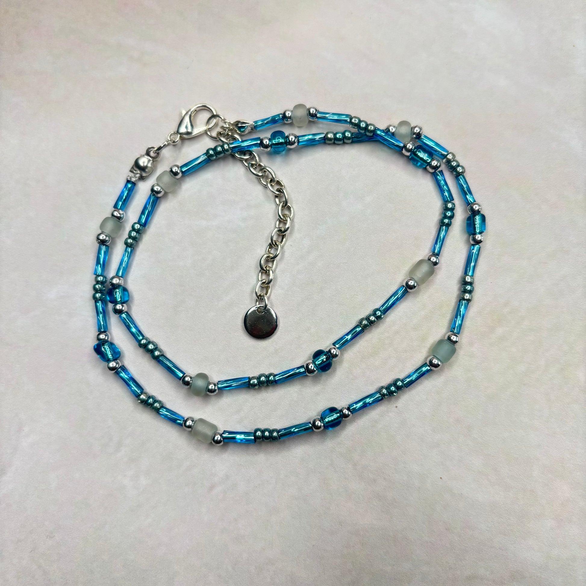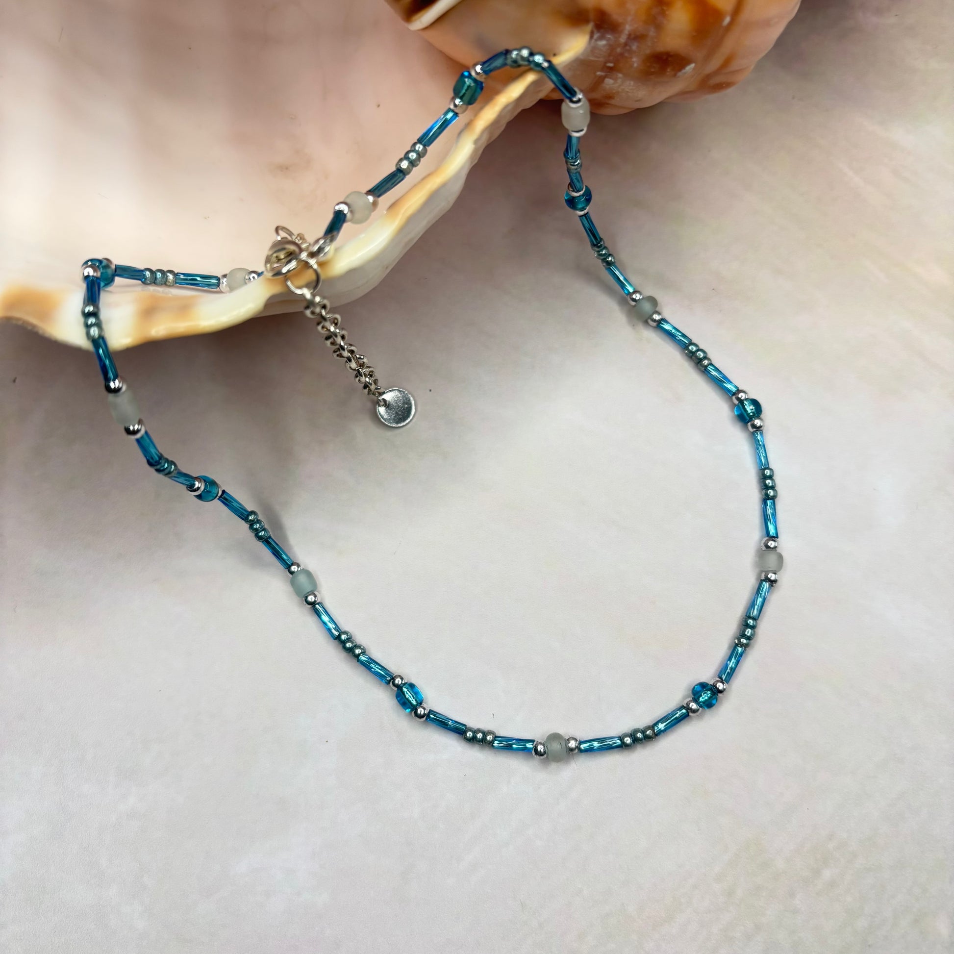 Eine schöne dezente Halskette in der Farbe türkis aus rocalles und Stift Perlen. Länge beträgt 42 cm und 5 cm Verlängerungs Kettchen.