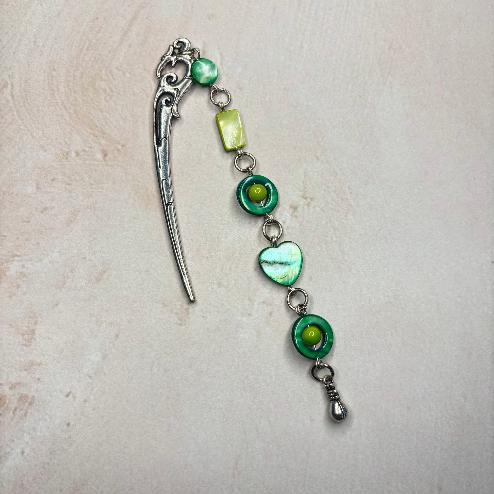 Ein sehr schönes ,kleines Lesezeichen aus Muschel Perlen in der Farbe dunkelgrün.