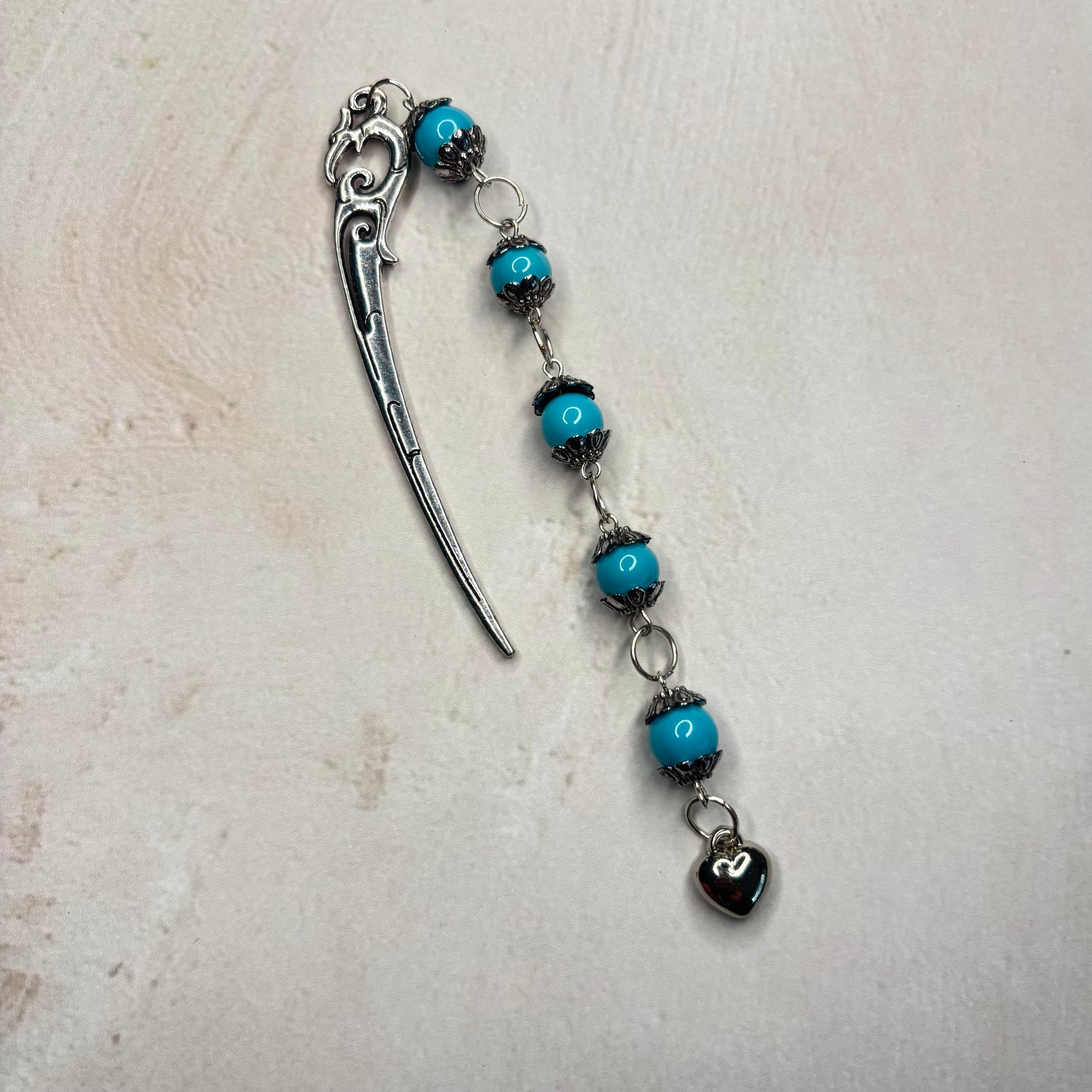 Ein sehr schönes, kleines Lesezeichen aus Glasperlen in der Farbe türkis.