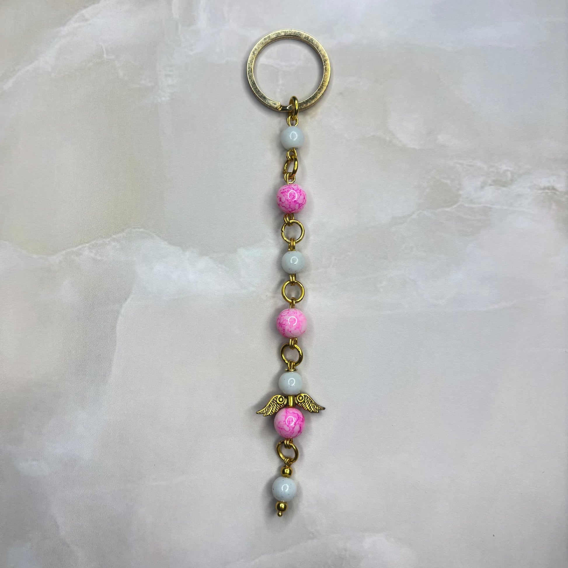 Einen sehr schönes Schlüsselanhänger in der Farbe Gold / rosa / weiß aus Glasperlen.