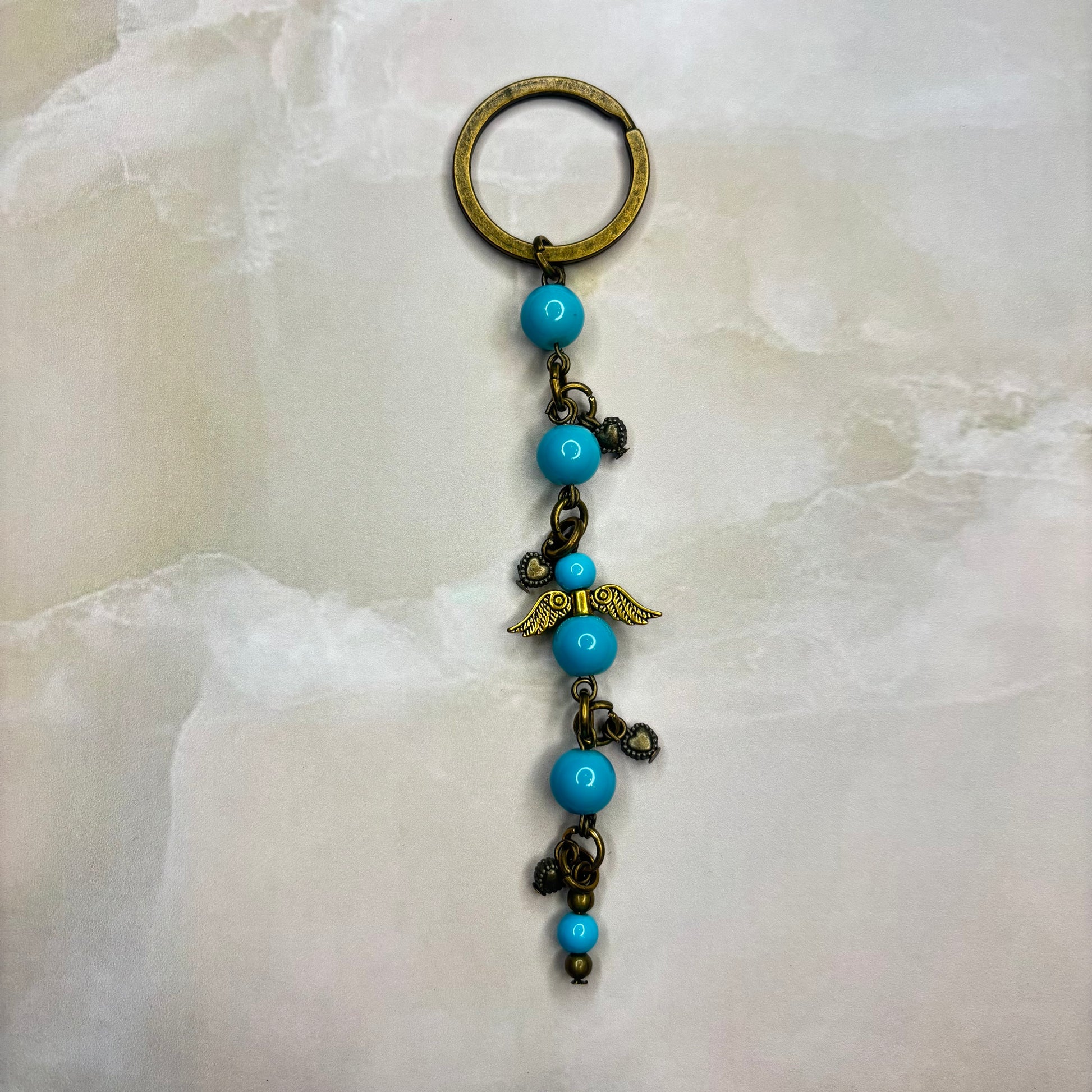 Ein sehr schönes Schlüsselanhänger in der Farbe altgold / türkis aus Glasperlen.