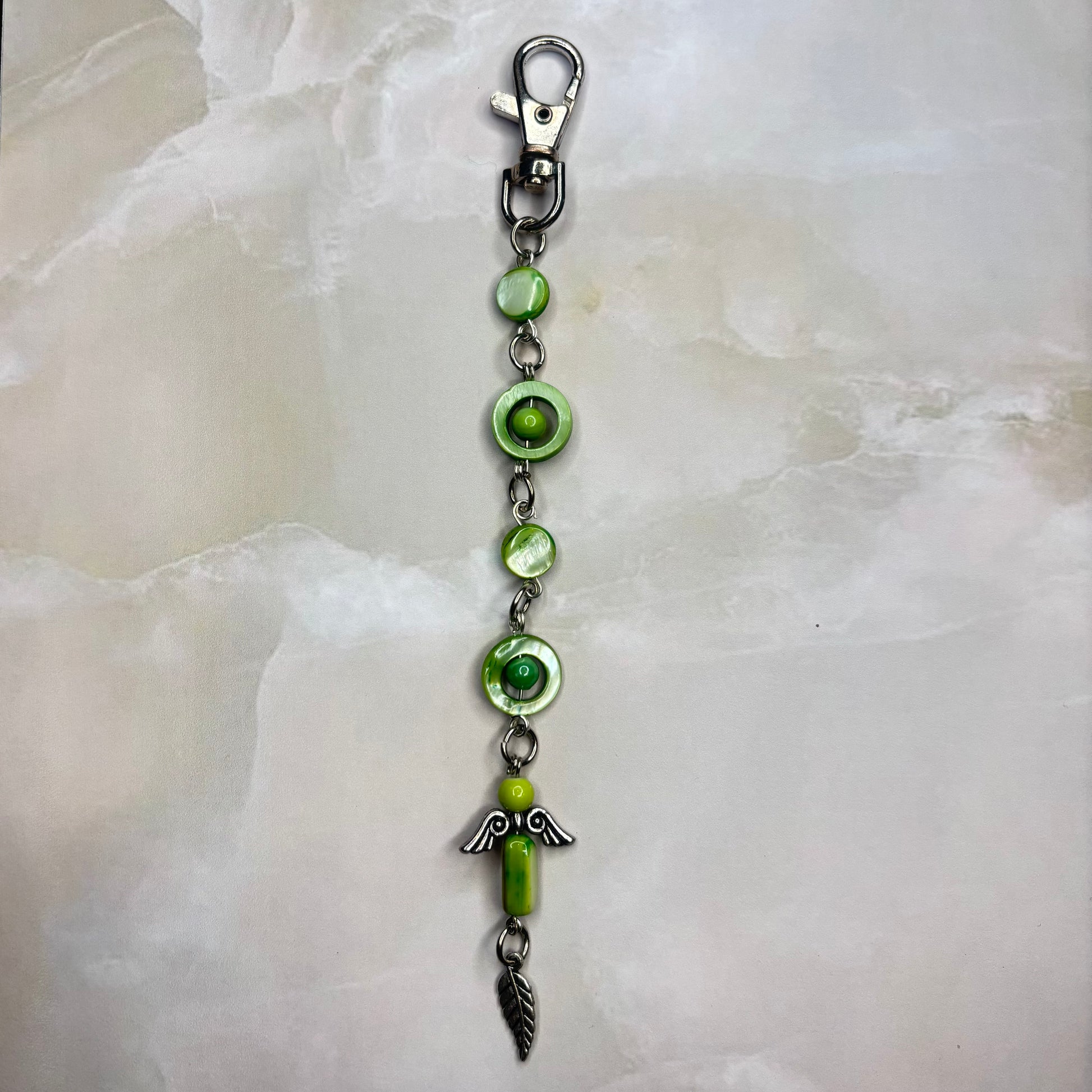 Schönes Schlüsselanhänger aus grünen Muschel Perlen mit Karabiner Verschluss.